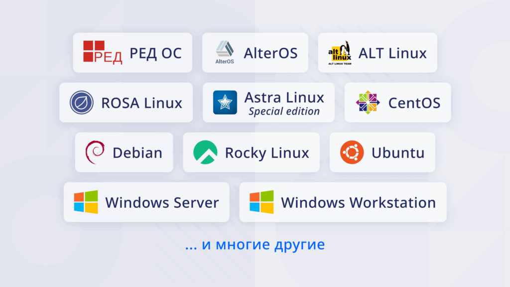 Поддерживаются как зарубежные, так и российские операционные системы.