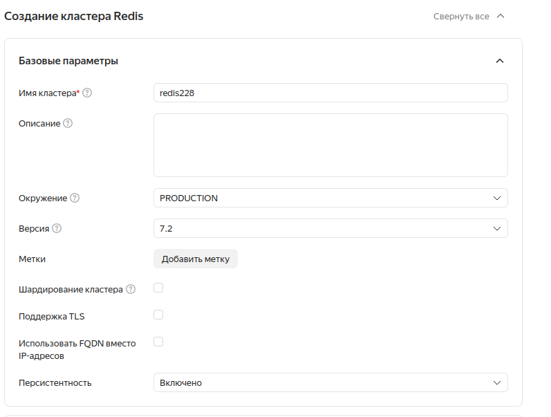 Настройка Managed Service for Redis