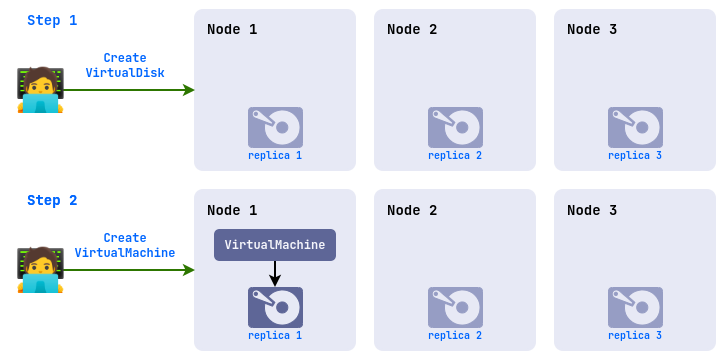 Помните, если Ваш StorageClass имеет настройку WaitForFirstConsumer, диск будет ожидать создания ВМ с этим диском. Статус диска в этом случае