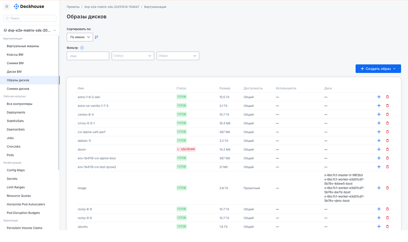 | Источники образов: — Загрузка образов из HTTP-источников — Загрузка из Docker — Загрузка из локальных файлов через CLI или веб-интерфейс — Возможность создания образов из существующих дисков или снимков дисков | ||||